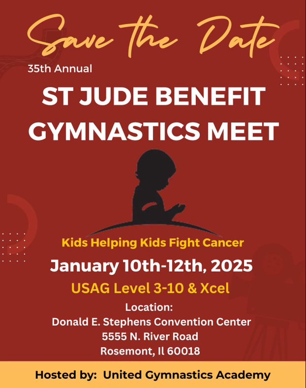 United Gymnastics Academy is excited to be hosting the 35th Annual St Jude Benefit Gymnastics Meet on January 10th-12th